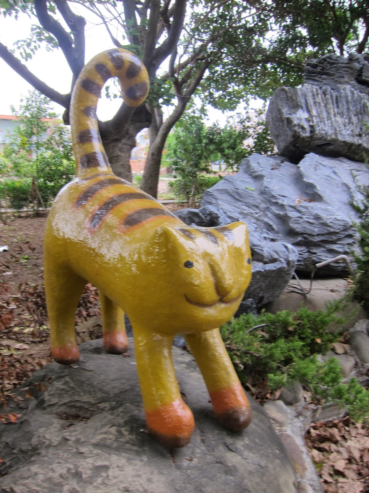 不過第二公園的人氣和頂溪社區裡比起來,可就遠遠不如了,公園裡雖然有可愛的貓咪塑像,東倒西歪的姿勢非常可愛,但在雲林這樣寬闊的環境裡,公園綠地吸引人的程度並不高,大概因為人煙罕至,看起來已經沒有人在整理,原本還有一些貓的塑像,都已經拆除了。