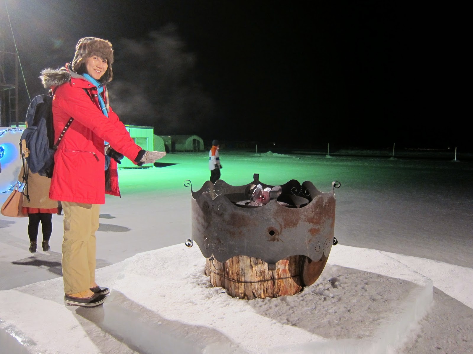舞台的另一頭有一個大火爐可以取暖,在冰天雪地中,火爐烤手真的太溫暖啦!